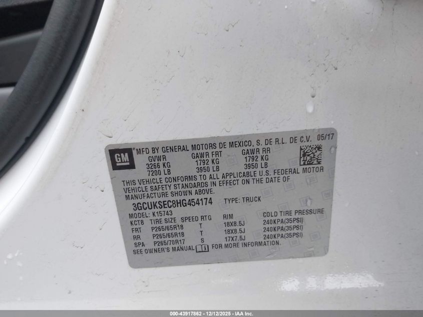 2017 CHEVROLET SILVERADO 1500 - 3GCUKSEC8HG454174, цвет - Белый, 5.3, Бензин, Полный привод из США