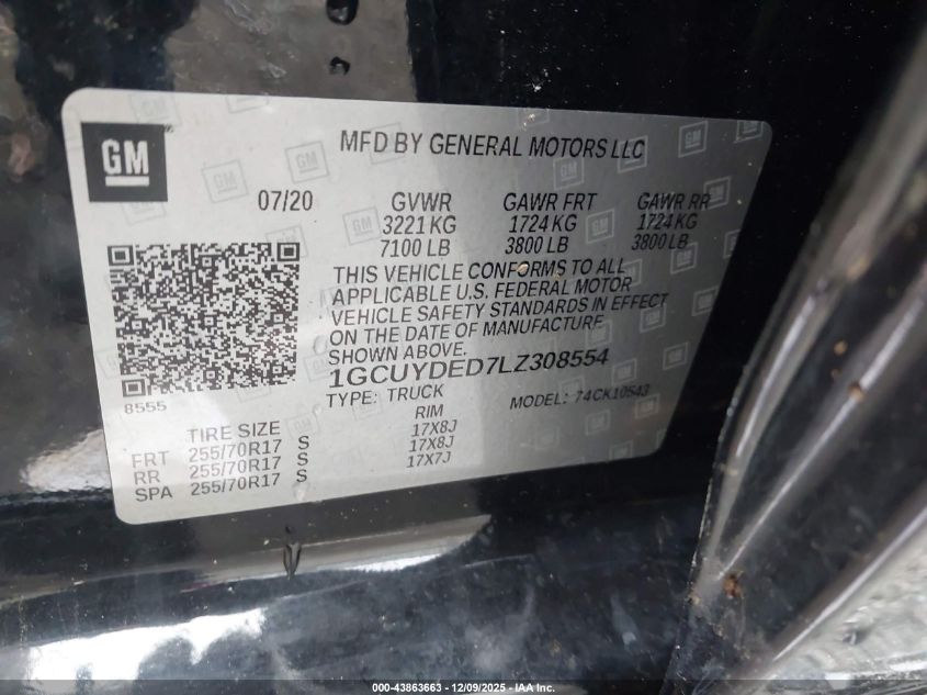 2020 CHEVROLET SILVERADO 1500 - 1GCUYDED7LZ308554, цвет - Черный, 5.3, Бензин, Полный привод из США