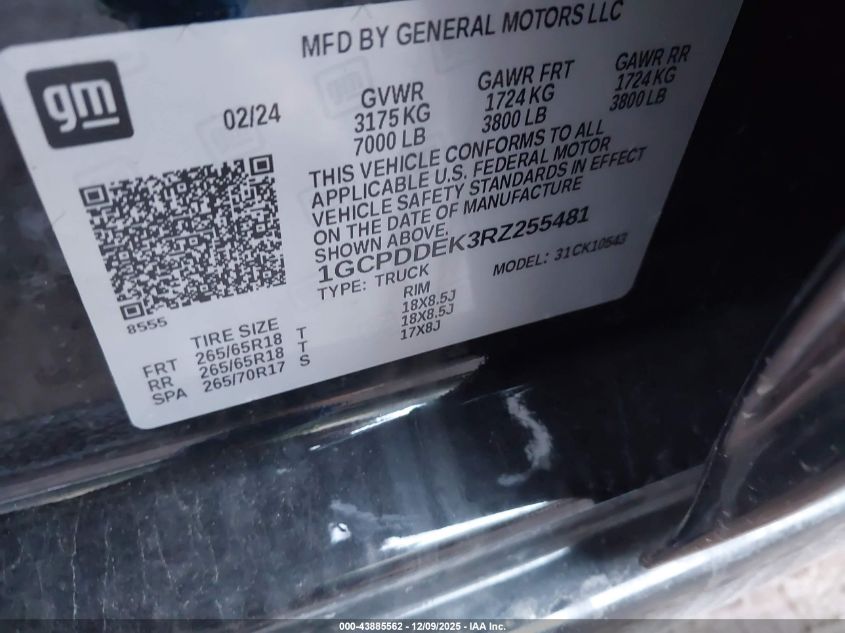 2024 CHEVROLET SILVERADO 1500 - 1GCPDDEK3RZ255481, цвет - Черный, 2.7, Бензин, Полный привод из США