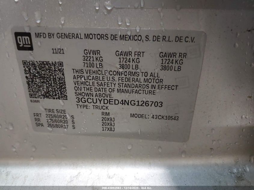 Цвет СеребряныйЦилиндры 8Привод Полный приводVIN 3GCUYDED4NG126703Состояние Заводится и едет (проверено)Повреждения По всему авто