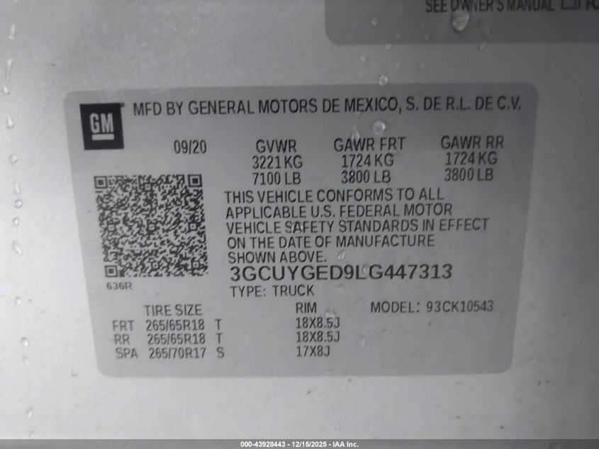 2020 CHEVROLET SILVERADO 1500 - 3GCUYGED9LG447313, цвет - Серебряный, 5.3, Бензин, Полный привод из США