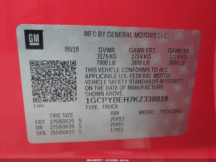 Цвет КрасныйЦилиндры 6Привод Полный приводVIN 1GCPYBEH7KZ338818Состояние СтационарноПовреждения Опрокидывание