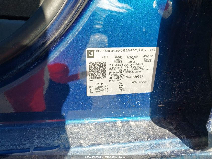 Цвет СинийЦилиндры 8Привод Полный приводVIN 3GCUKTEC4JG529397Состояние Заводится и едет (проверено)Повреждения Передняя или задняя