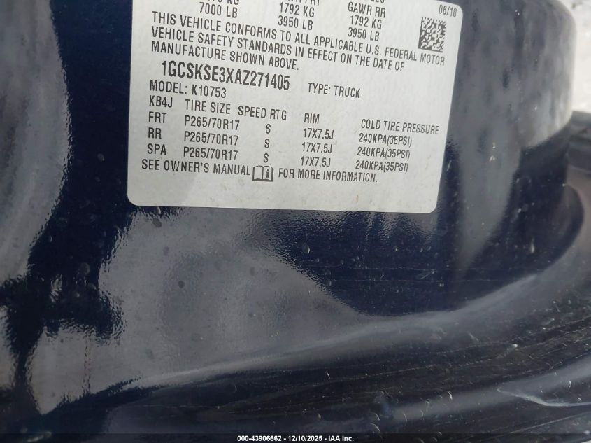 2010 CHEVROLET SILVERADO 1500 - 1GCSKSE3XAZ271405, цвет - Синий, 5.3, Бензин, Полный привод из США