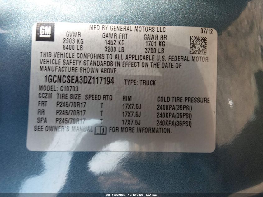 Цвет СинийЦилиндры 8VIN 1GCNCSEA3DZ117194Состояние СтационарноПовреждения По всему авто