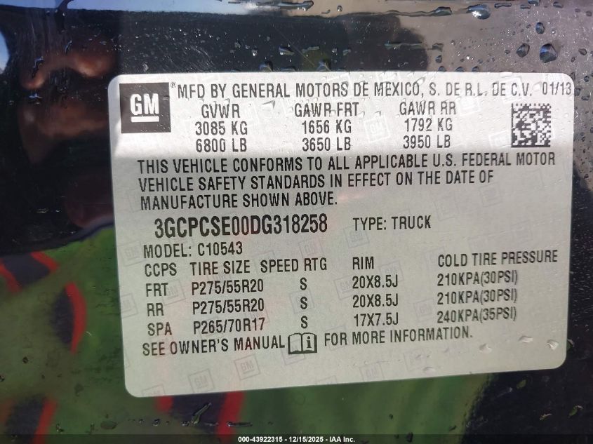 Цвет ЧерныйЦилиндры 8VIN 3GCPCSE00DG318258Состояние Заводится и едет (проверено)
