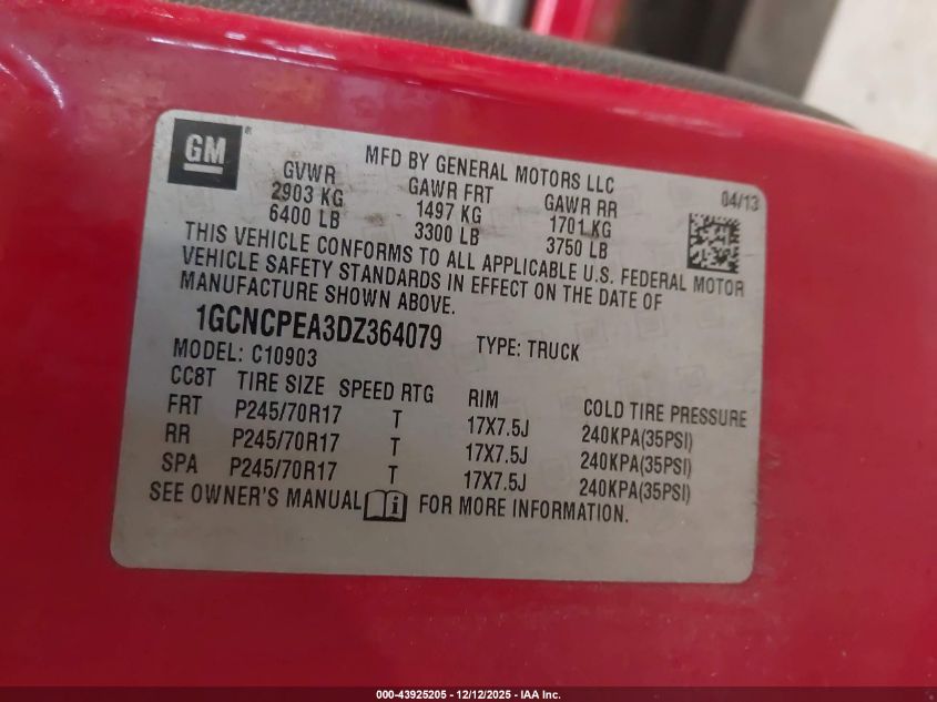 Цвет КрасныйЦилиндры 8VIN 1GCNCPEA3DZ364079Состояние СтационарноПовреждения Передняя и задняя