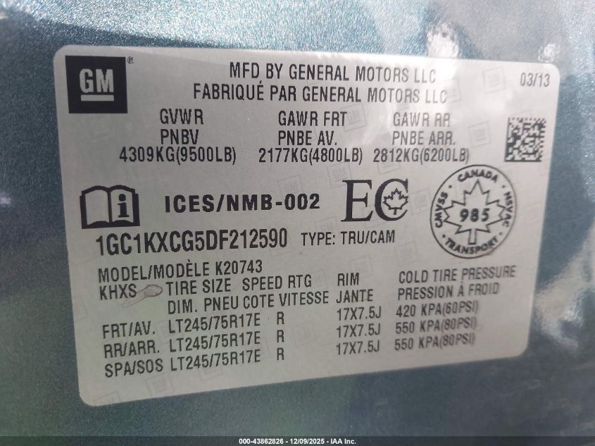 Цвет СинийЦилиндры 8Привод Полный приводVIN 1GC1KXCG5DF212590Состояние СтационарноПовреждения Передняя или задняя
