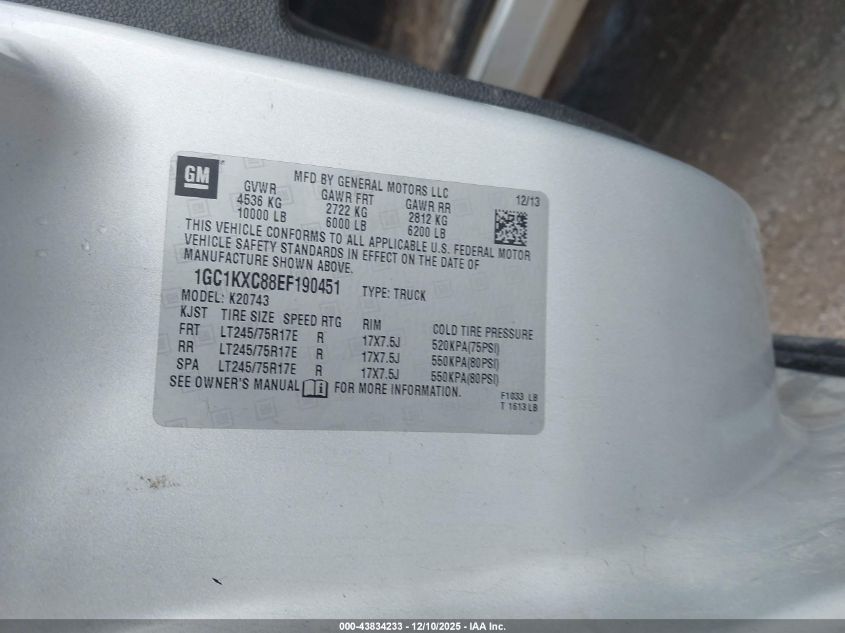 2014 CHEVROLET SILVERADO 2500 - 1GC1KXC88EF190451, цвет - Серебряный, 6.6, Дизель, Полный привод из США