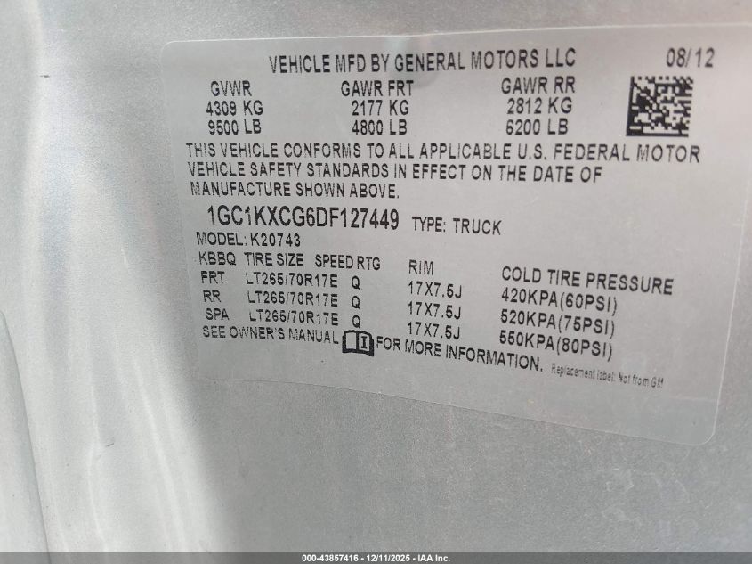 Цвет СеребряныйЦилиндры 8Привод Полный приводVIN 1GC1KXCG6DF127449Состояние СтационарноПовреждения Передняя правая