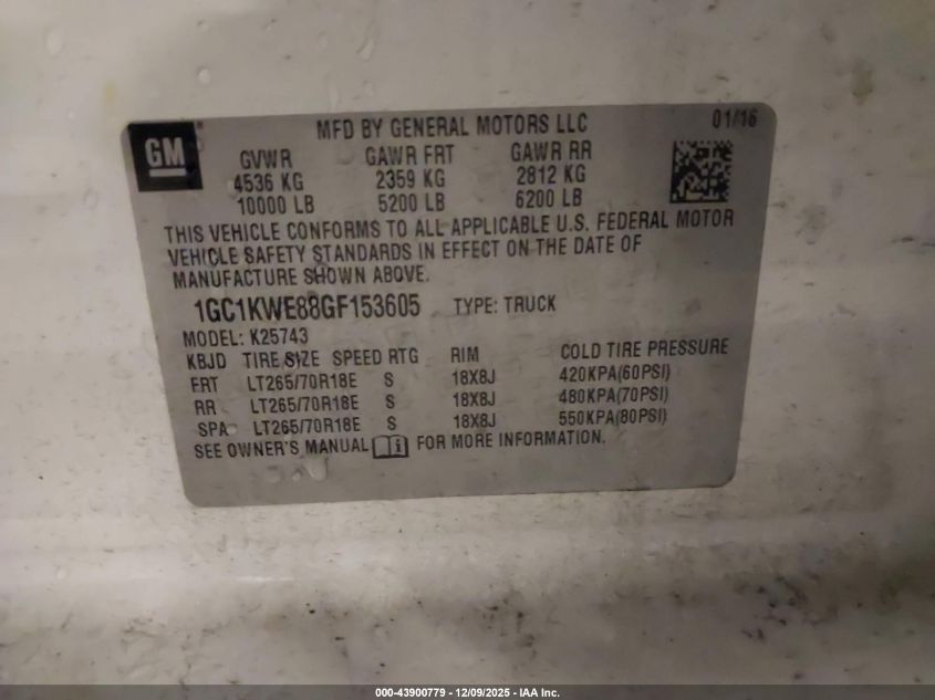 Цвет БелыйЦилиндры 8Привод Полный приводVIN 1GC1KWE88GF153605Состояние Заводится и едет (проверено)Повреждения Задняя