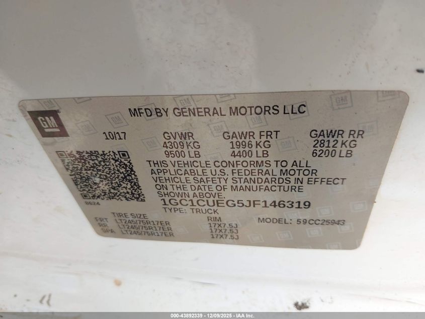 Цвет БелыйЦилиндры 8VIN 1GC1CUEG5JF146319Состояние Заводится и едет (проверено)Повреждения По бокам