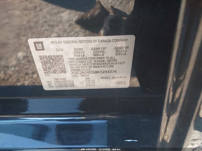 Цвет ЧерныйЦилиндры 8Привод Полный приводVIN 2GC2KREG8K1234374Состояние Заводится и едет (проверено)Повреждения Передняя или задняя