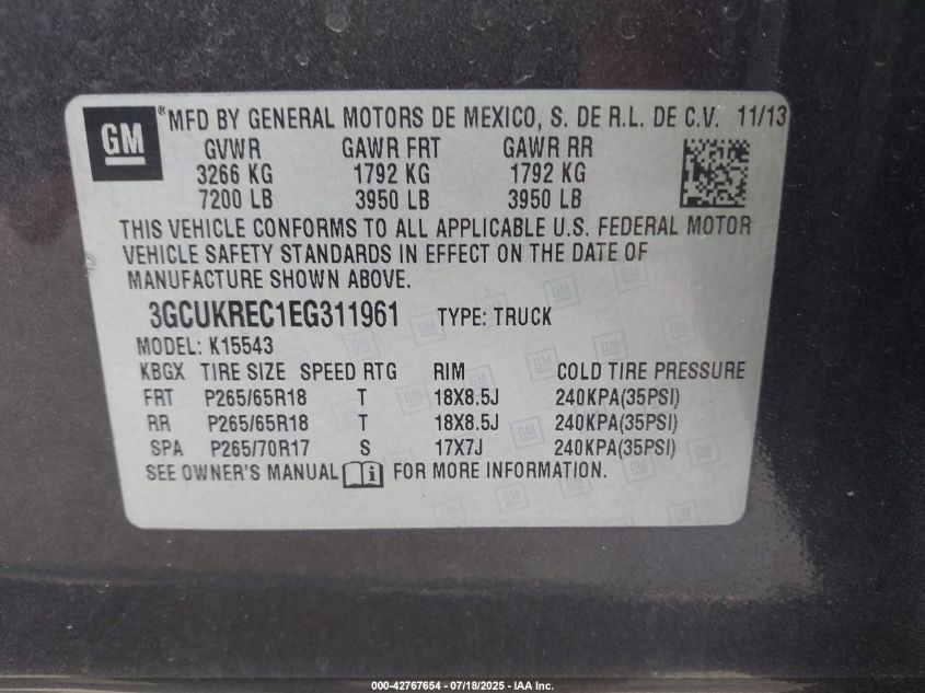 Цвет ЧерныйЦилиндры 8Привод Полный приводVIN 3GCUKREC1EG311961Состояние СтационарноПовреждения Опрокидывание