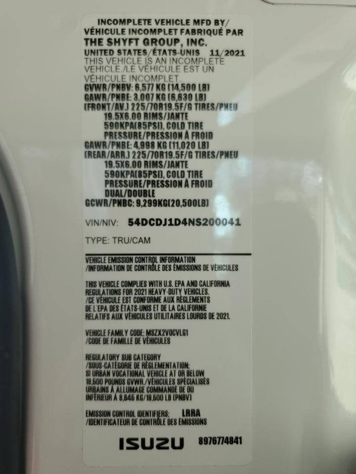 2022 CHEVROLET SILVERADO 4500 - 54DCDJ1D4NS200041, цвет - Белый, 6.6, Бензин, Задний привод из США