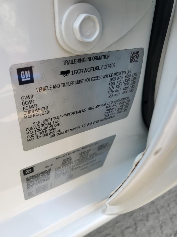 2020 CHEVROLET SILVERADO - 1GCRWCED0LZ137409, цвет - Белый, 5.3, Бензин, Задний привод из США