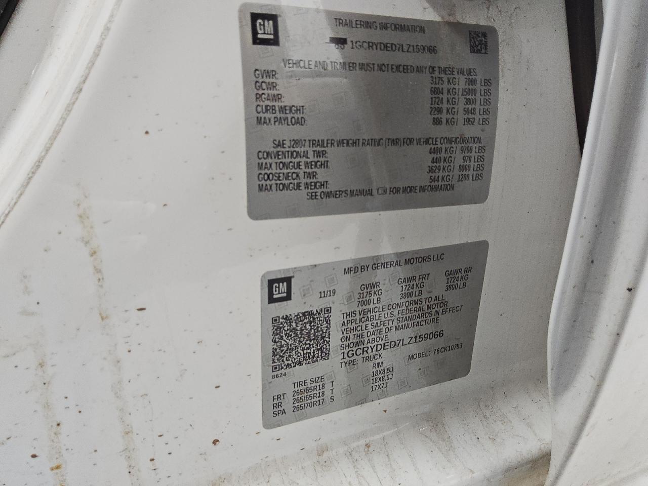 Цвет БелыйЦилиндры 8Привод 4x4 с задним приводомVIN 1GCRYDED7LZ159066Состояние Заводится и едет (проверено)Повреждения НезначительныеДата аукциона 2025-10-09