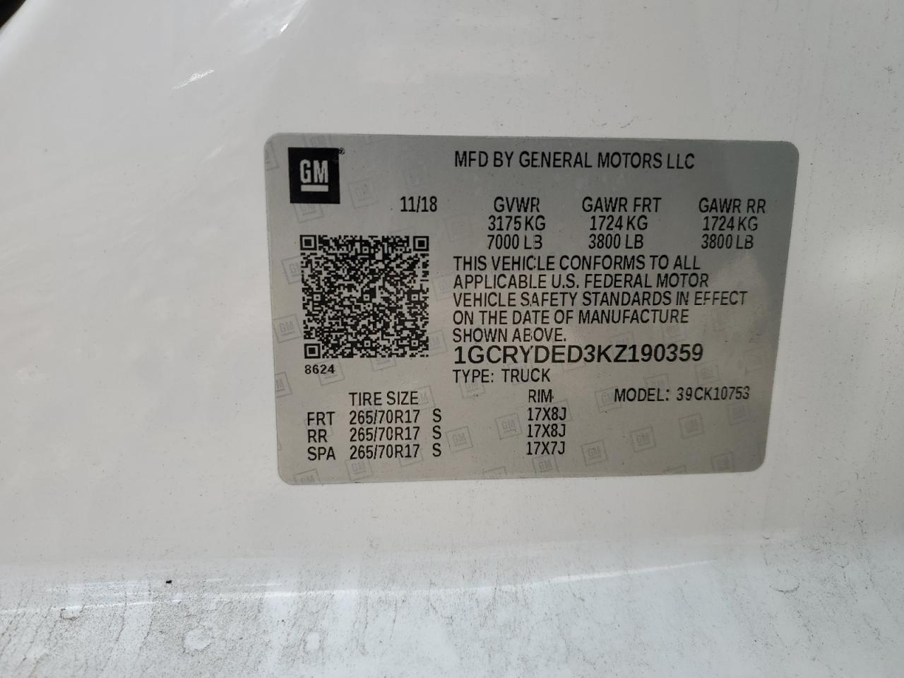 Цвет БелыйЦилиндры 8Привод 4x4 с задним приводомVIN 1GCRYDED3KZ190359Состояние Заводится и едет (проверено)Повреждения НезначительныеДата аукциона 2025-10-13