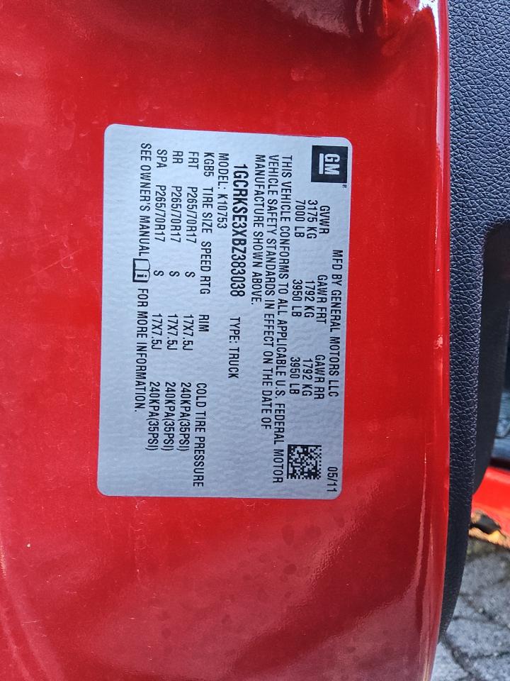 2011 CHEVROLET SILVERADO - 1GCRKSE3XBZ383038, цвет - Красный, 5.3, Бензин, 4x4 с задним приводом из США