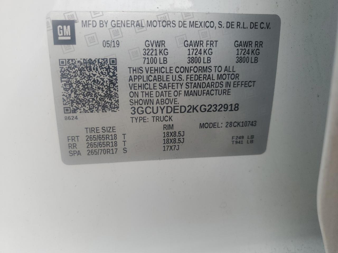 Цвет БелыйЦилиндры 8Привод 4x4 с задним приводомVIN 3GCUYDED2KG232918Состояние Заводится и едет (проверено)Повреждения НезначительныеДата аукциона 2025-10-13
