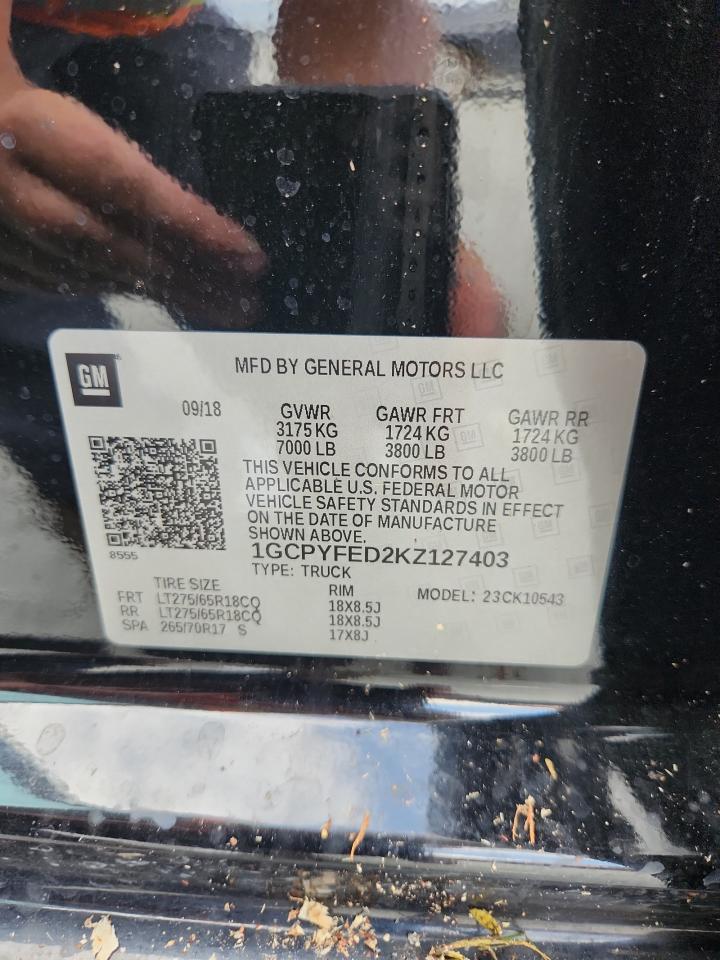 2019 CHEVROLET SILVERADO - 1GCPYFED2KZ127403, цвет - Черный, 5.3, Бензин, 4x4 с задним приводом из США