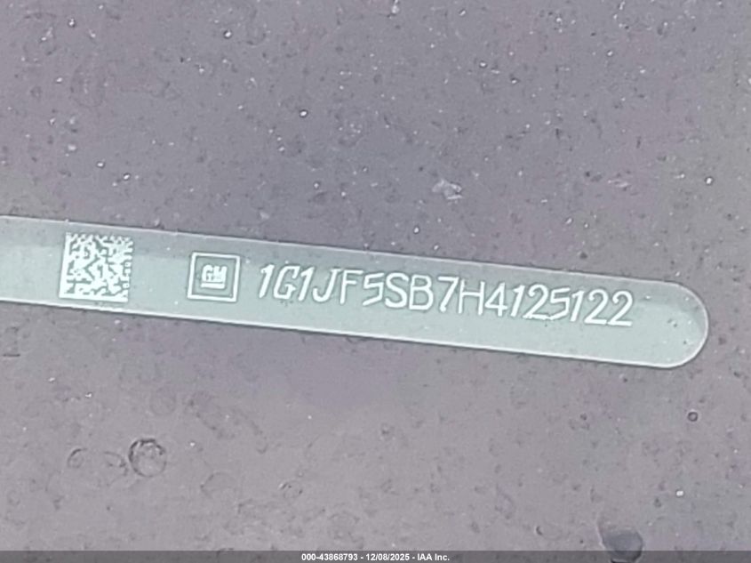 Цвет БелыйЦилиндры 4Привод Передний приводVIN 1G1JF5SB7H4125122Состояние Заводится и едет (проверено)Повреждения Передняя или задняя