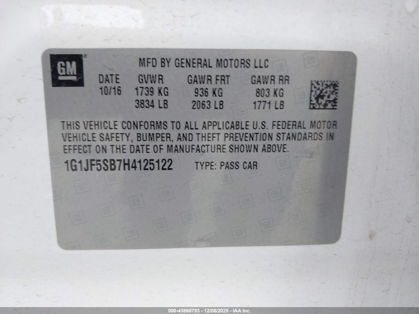 2017 CHEVROLET SONIC LT
