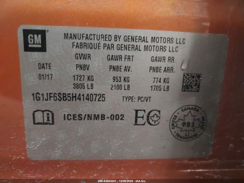 2017 CHEVROLET SONIC - 1G1JF6SB5H4140725, цвет - Апельсиновый, 1.4, Бензин, Передний привод из США