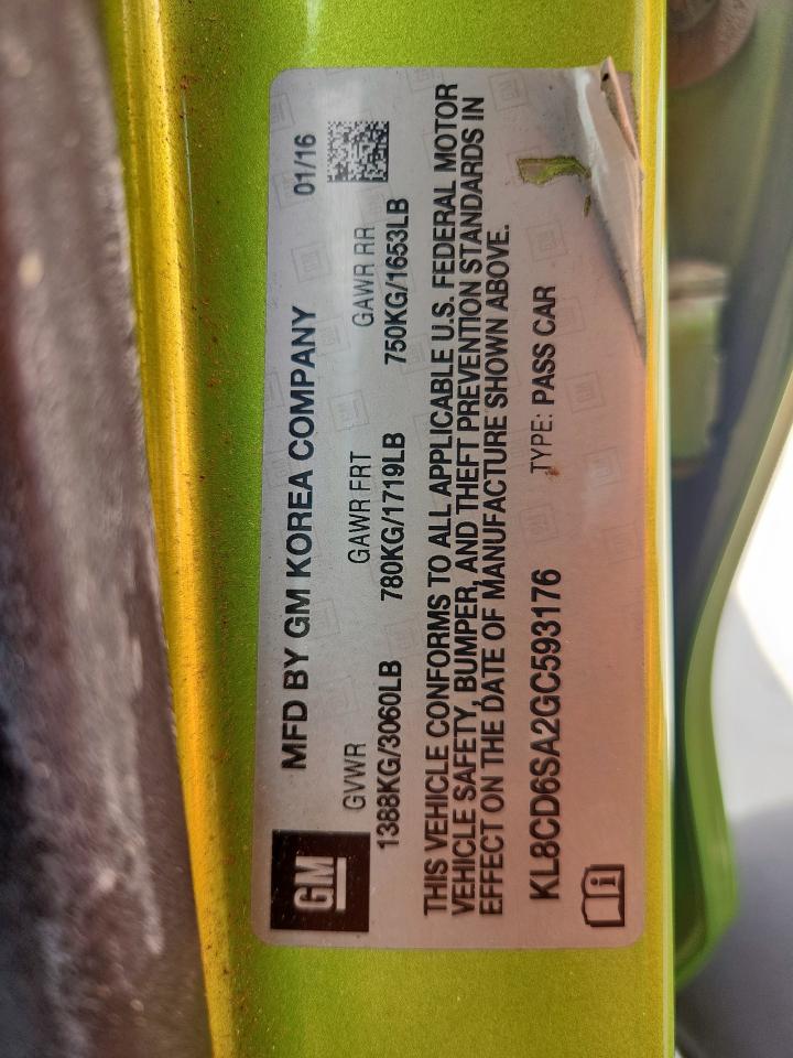 2016 CHEVROLET SPARK - KL8CD6SA2GC593176, цвет - Зеленый, 1.4, Бензин, из США