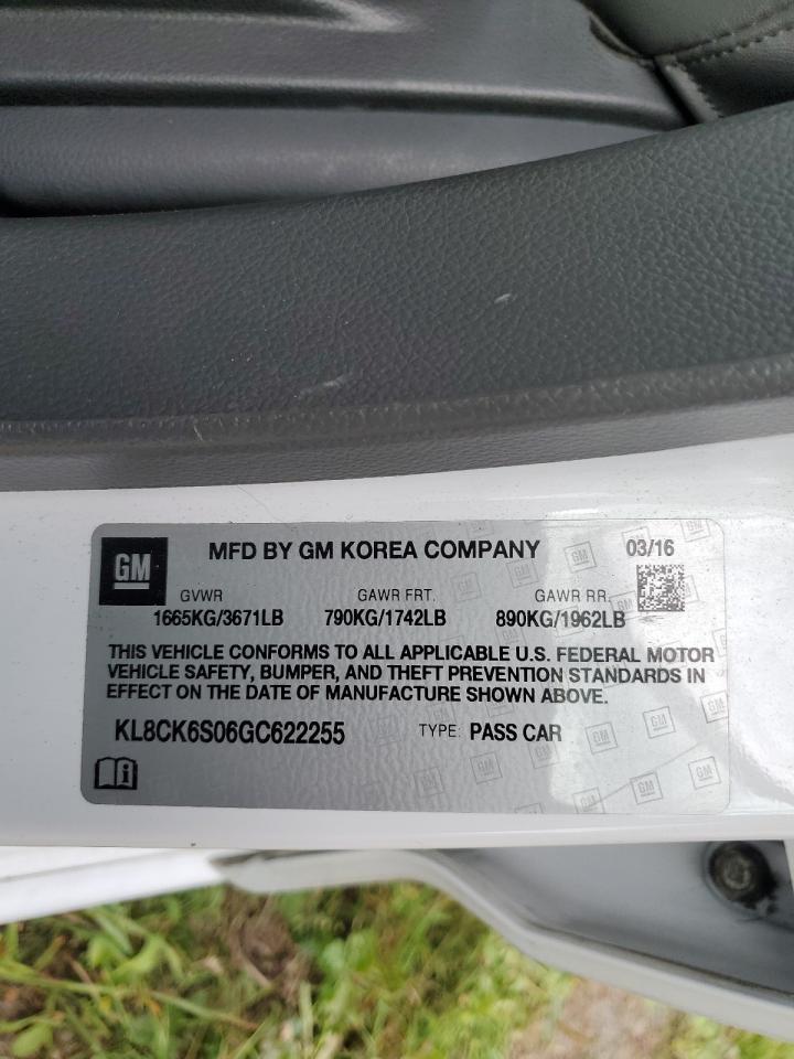 2016 CHEVROLET SPARK - KL8CK6S06GC622255, цвет - Белый, , Электрический, из США