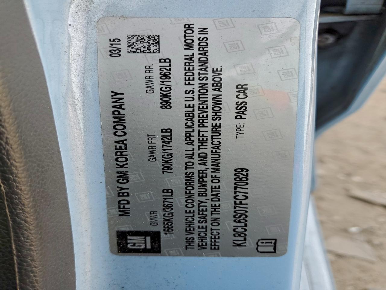 Цвет СинийVIN KL8CL6S07FC770829Состояние Заводится и едет (проверено)Повреждения Передняя или задняяДата аукциона 2025-12-18