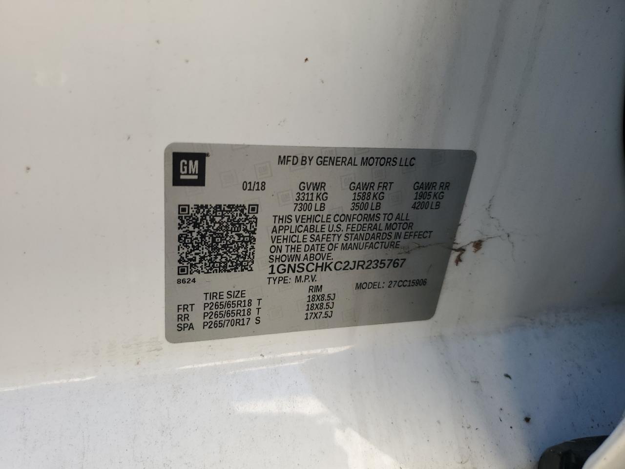 2018 CHEVROLET SUBURBAN - 1GNSCHKC2JR235767, цвет - Белый, 5.3, Бензин, Задний привод из США