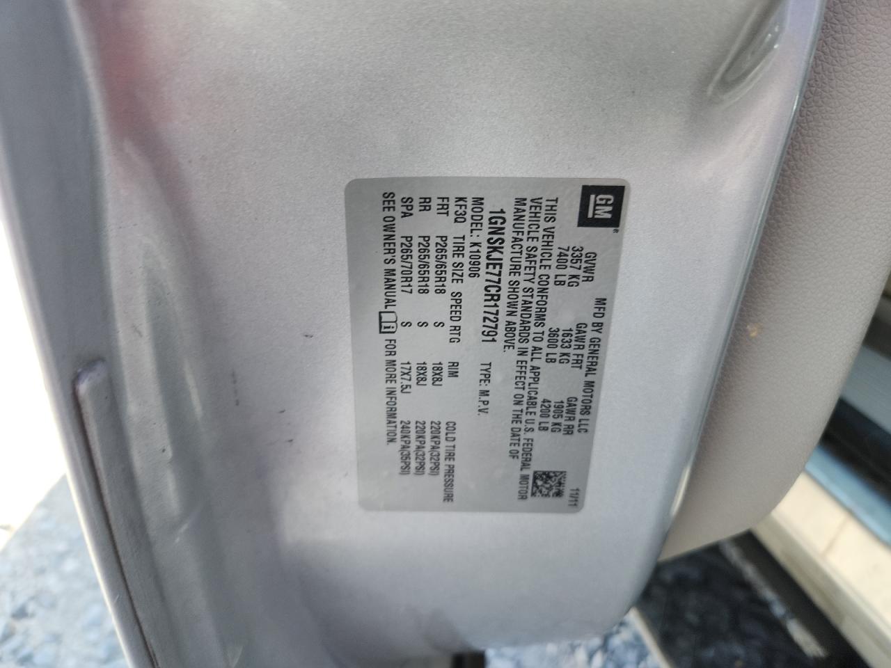 Цвет СеребряныйЦилиндры 8Привод 4x4 с задним приводомVIN 1GNSKJE77CR172791Состояние Заводится и едет (проверено)Повреждения По бокамДата аукциона 2025-10-10