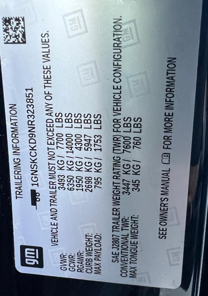 2022 CHEVROLET SUBURBAN - 1GNSKCKD9NR323851, цвет - Черный, 5.3, Бензин, 4x4 с задним приводом из США
