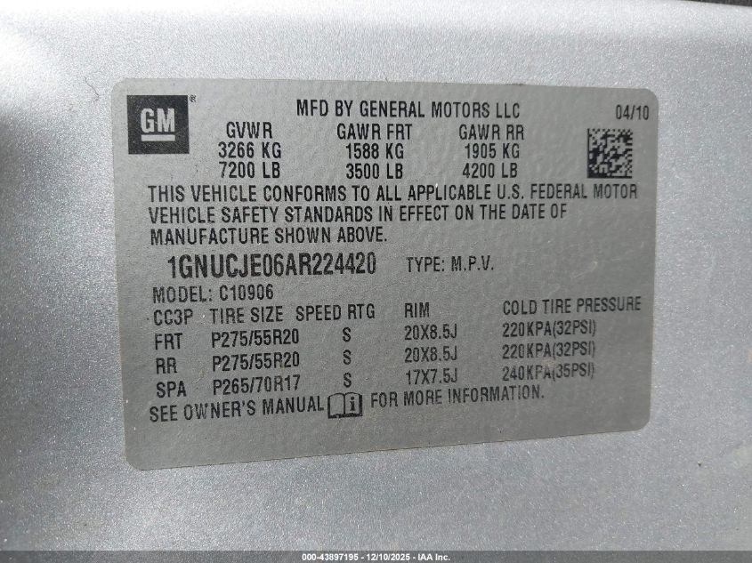 Цвет СеребряныйЦилиндры 8VIN 1GNUCJE06AR224420Состояние Заводится и едет (проверено)Повреждения Правая сторона