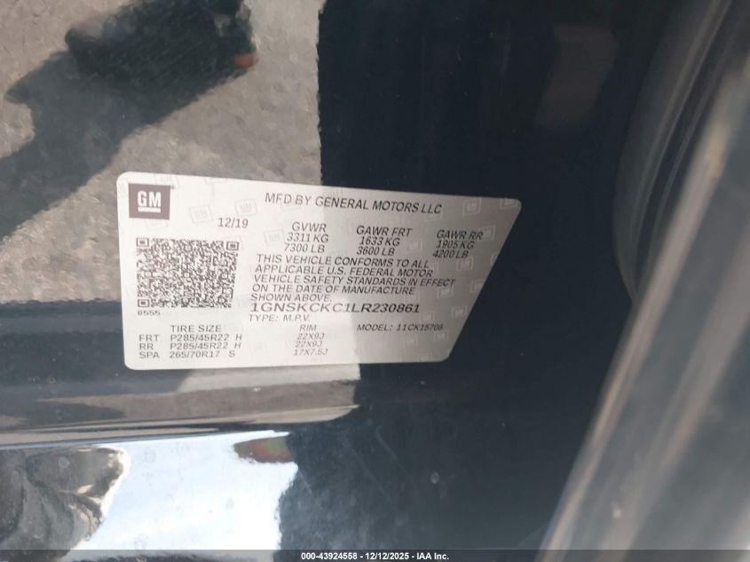 2020 CHEVROLET TAHOE - 1GNSKCKC1LR230861, цвет - Черный, 5.3, Бензин, Полный привод из США