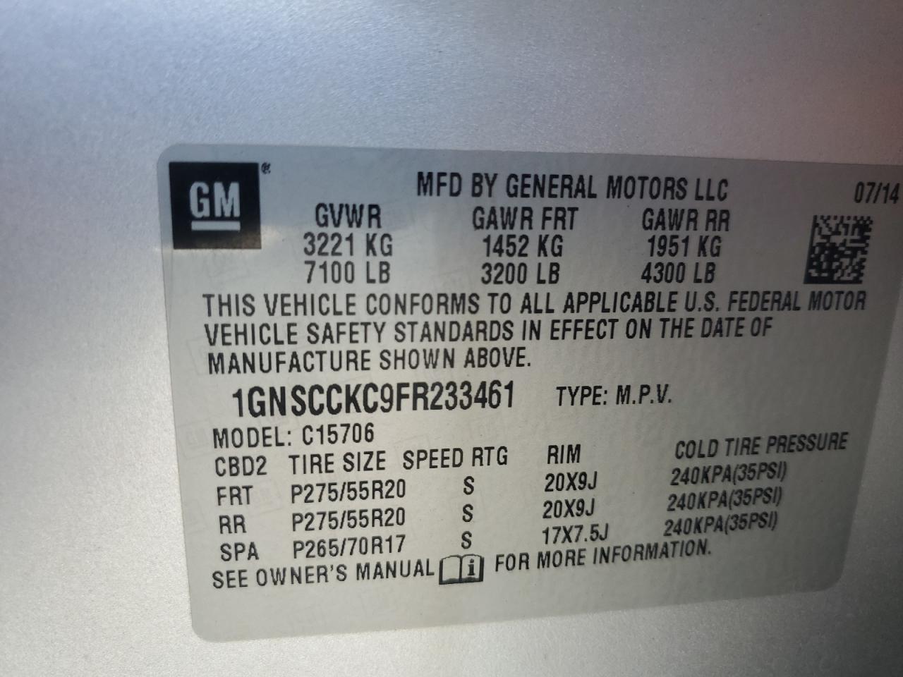 Цвет СеребряныйЦилиндры 8Привод Задний приводVIN 1GNSCCKC9FR233461Состояние Заводится и едет (проверено)Повреждения НезначительныеДата аукциона 2025-10-08