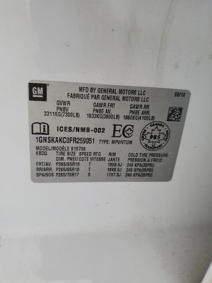 2015 CHEVROLET TAHOE - 1GNSKAKC0FR259051, цвет - Белый, 5.3, Бензин, 4x4 с задним приводом из США