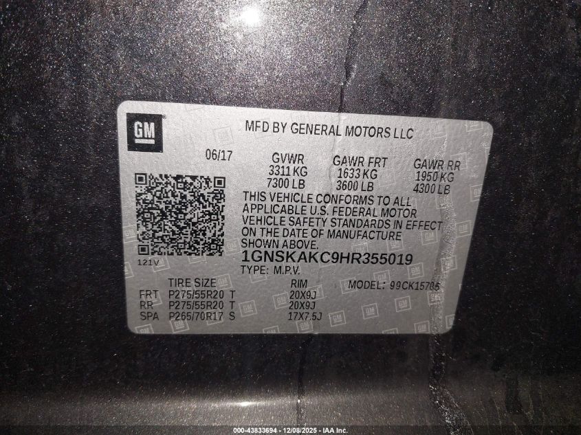 Цвет СерыйЦилиндры 8Привод Полный приводVIN 1GNSKAKC9HR355019Состояние Заводится и едет (проверено)Повреждения Передняя или задняя