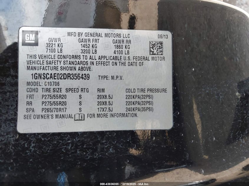 Цвет ЧерныйЦилиндры 8VIN 1GNSCAE02DR356439Состояние ЗаводитсяПовреждения Передняя или задняя