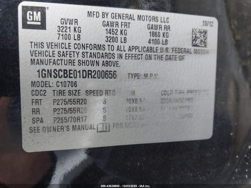 Цвет ЧерныйЦилиндры 8VIN 1GNSCBE01DR200656Состояние Заводится и едет (проверено)Повреждения Передняя праваяДата аукциона 2025-12-16