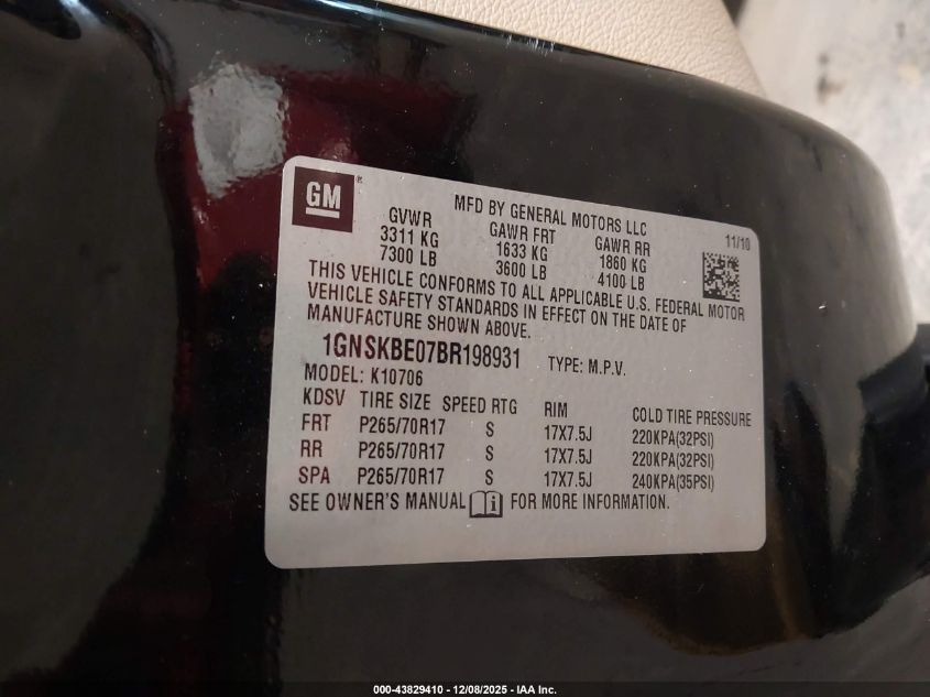 2011 CHEVROLET TAHOE - 1GNSKBE07BR198931, цвет - , 5.3, Бензин, Полный привод из США