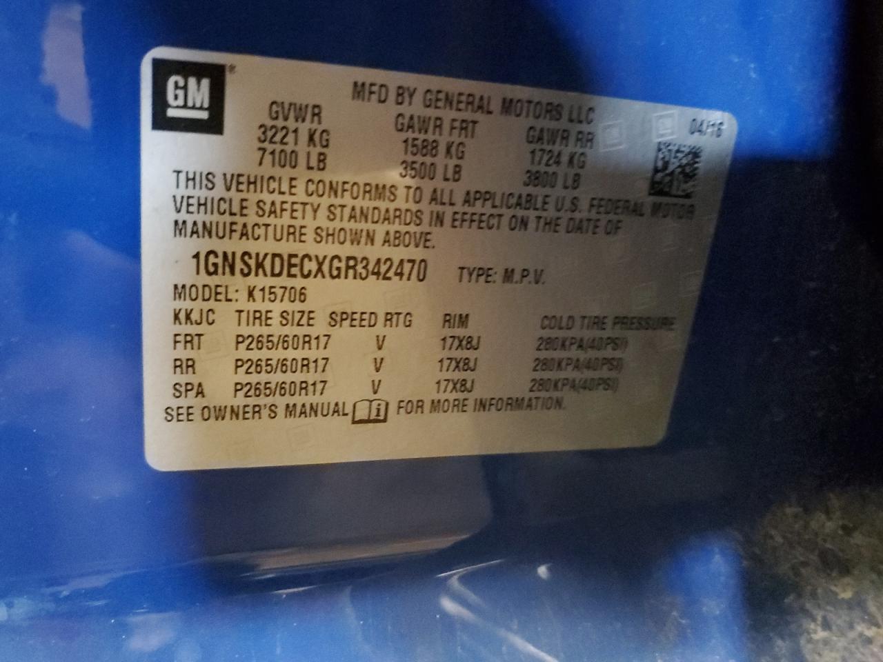 Цвет СинийЦилиндры 8Привод 4x4 с задним приводомVIN 1GNSKDECXGR342470Состояние Заводится и едет (проверено)Повреждения НезначительныеДата аукциона 2025-10-09