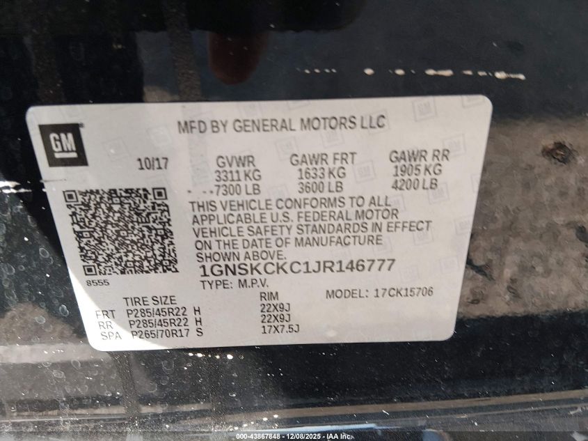 Цвет БелыйЦилиндры 8Привод Полный приводVIN 1GNSKCKC1JR146777Состояние СтационарноПовреждения Вандализм