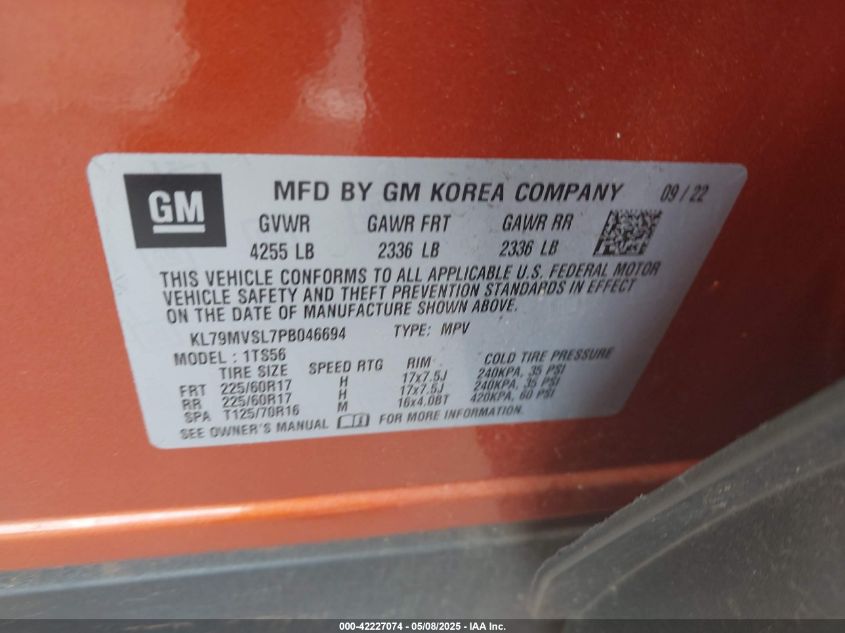 2023 CHEVROLET TRAILBLAZER - KL79MVSL7PB046694, цвет - Апельсиновый, 1.3, Бензин, Передний привод из США