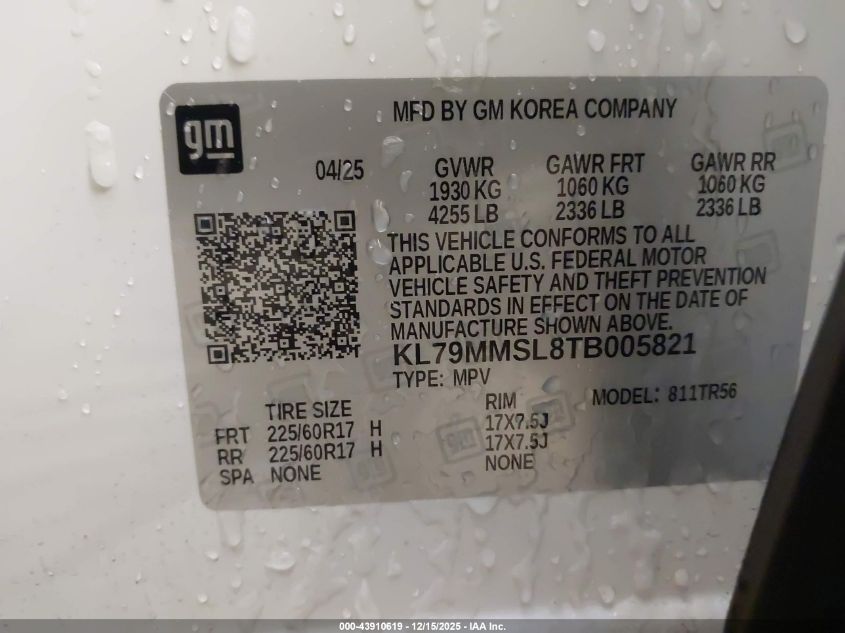 2026 CHEVROLET TRAILBLAZER - KL79MMSL8TB005821, цвет - Белый, 1.3, Бензин, Передний привод из США