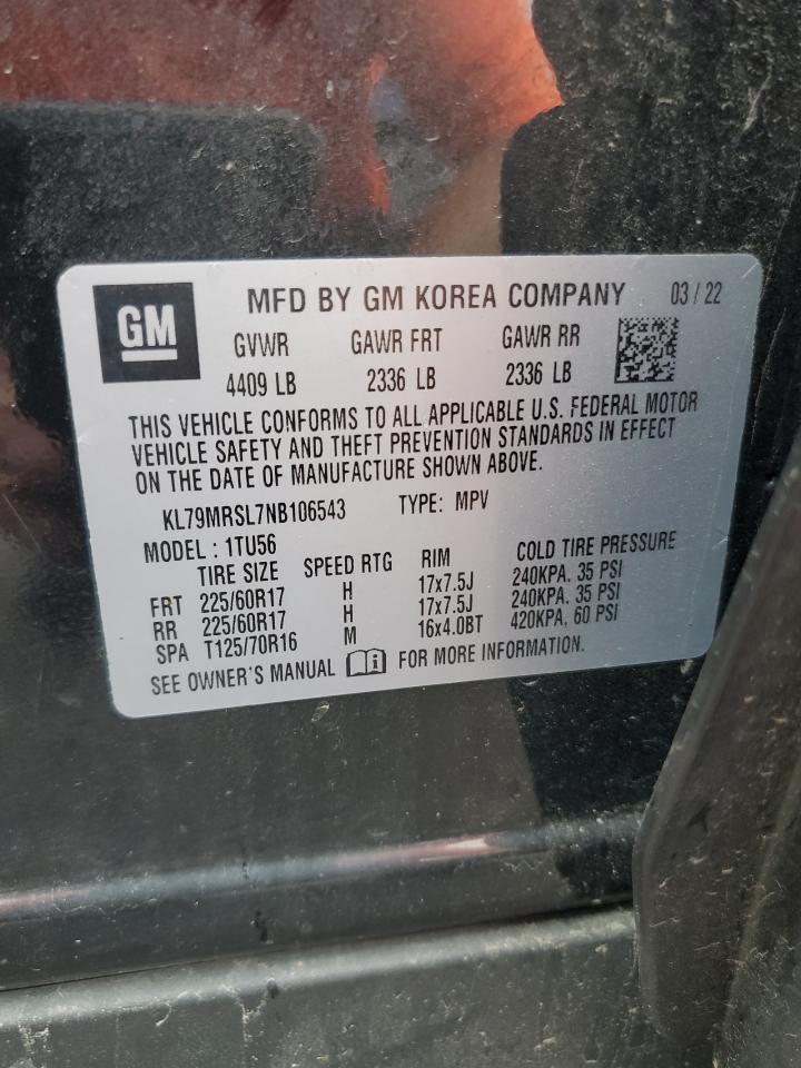 2022 CHEVROLET TRAILBLAZER - KL79MRSL7NB106543, цвет - Черный, 1.3, Бензин, Полный привод из США
