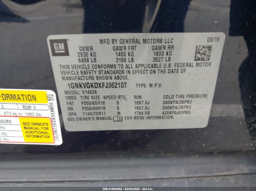 2015 CHEVROLET TRAVERSE - 1GNKVGKDXFJ362107, цвет - Черный, 3.6, Бензин, Полный привод из США