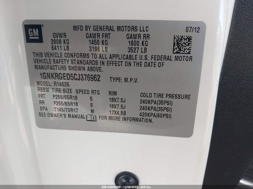 Цвет КремовыйЦилиндры 6Привод Передний приводVIN 1GNKRGED5CJ376962Состояние Заводится и едет (проверено)Повреждения Обычный износДата аукциона 2025-12-23