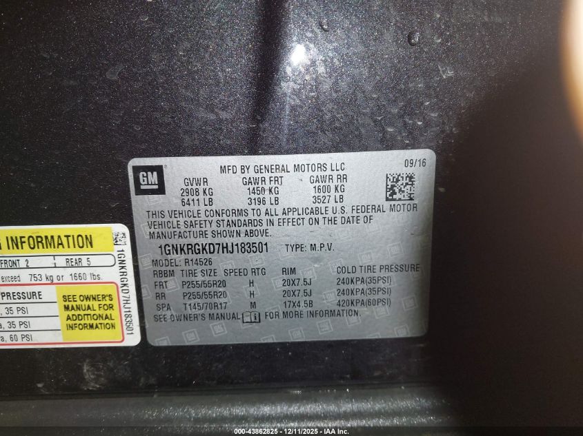 Цвет ЧерныйЦилиндры 6Привод Передний приводVIN 1GNKRGKD7HJ183501Состояние СтационарноПовреждения Передняя и задняя